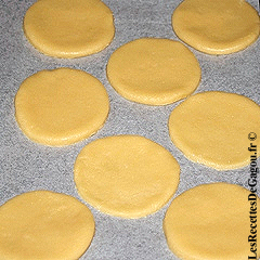 - A l'aide de l'emporte-pièce ou d'un verre, formez vos galettes et placez-les sur la plaque du four munie d'une feuille de papier sulfurisé.