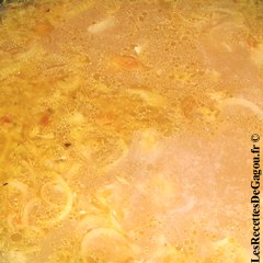 - Versez progressivement la préparation au bouillon sur les oignons, tout en remuant afin d'éviter la formation de grumeaux. Laissez épaissir sur feu moyen 20 minutes, en mélangeant régulièrement.