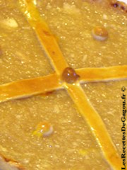 - A l'aide du pinceau, dorez au jaune d'oeuf les bords et les éléments en pâte de la tarte.